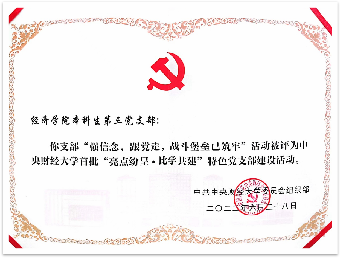 6月29日上午,在学校召开的庆祝中国共产党成立101周年大会上公布了第二批校级“党建工作标杆学院”、“党建工作样板支部”,首批校级“亮点纷呈·比学共建”特色党支部评选结果。此次评选“党建工作标杆学院”2个,研究生“党建工作样板支部”7个,教工“亮点纷呈·比学共建”特色党支部建设活动15个,本科生“亮点纷呈·比学共建”特色党支部建设活动6个。雷竞技raybet官网入选校级“党建工作标杆学院”,经济史研究生党支部入选“党建工作样板支部”,政治经济学系教工党支部和本科生第三党支部分别获评雷竞技raybet官网版下载首批“亮点纷呈·比学共建”特色党支部建设活动。