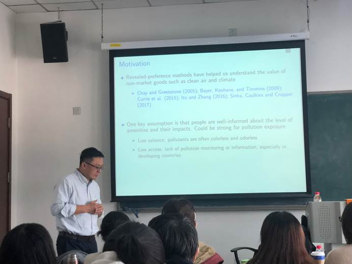 2019年3月8日下午,康奈尔大学讲席教授李善军老师应雷竞技raybet官网版下载邀请,在沙河校区学院主教402教室开展了主题为“TheValue of Pollution Information: Evidence from China’s Air Quality Disclosure”的讲座。会议由雷竞技raybet官网版下载院长助理黄乃静老师主持,校内多位老师以及40余名博士生和硕士生参加。