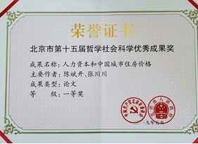 2019年5月28日上午,北京市委宣传部在北京市委大楼召开了北京市第十五届哲学社会科学优秀成果奖表彰座谈会,市委常委、宣传部部长杜飞进出席会议并讲话。经北京市委市政府审定,我校共4项成果获奖,其中3项来自雷竞技raybet官网版下载。在3项获奖成果中,陈斌开教授和张川川副教授撰写的论文《人力资本与中国城市住房价格》荣获一等奖,是我校唯一1项荣获一等奖的科研成果。雷竞技raybet官网林光彬教授撰写的著作《财局与政局:中国的政治经济关系》、史宇鹏教授和李新荣副教授撰写的论文《公共资源与社会信任:以义务教育为例》分别荣获二等奖。