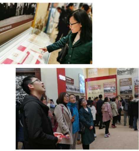 赵若思老师说,此次展览从1949年建国开始按时间轴依次展开。1977年恢复高考、1985年设立教师节、女排精神、铿锵玫瑰、中国载人航天的伟大历程,以及中国在医学、军事、核能方面取得的伟大成就深深感动了我们,内心激动万分。