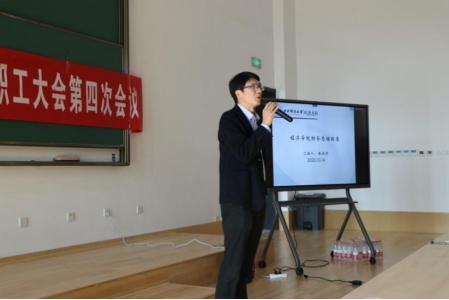 在庄严的国歌中,会议拉开帷幕。院长陈斌开首先进行学院财务情况报告。陈斌开院长分析了2019年度学院财务收支情况,并指出过去一年学院量入为出、精打细算,维持了收支平衡,同时对学院教学科研工作起到了良好的支撑作用。接着,陈斌开院长总结了学院过去一年的工作成果,并围绕党建工作、教学改革、学科建设和科学研究等方面介绍了学院2020年度的工作要点。